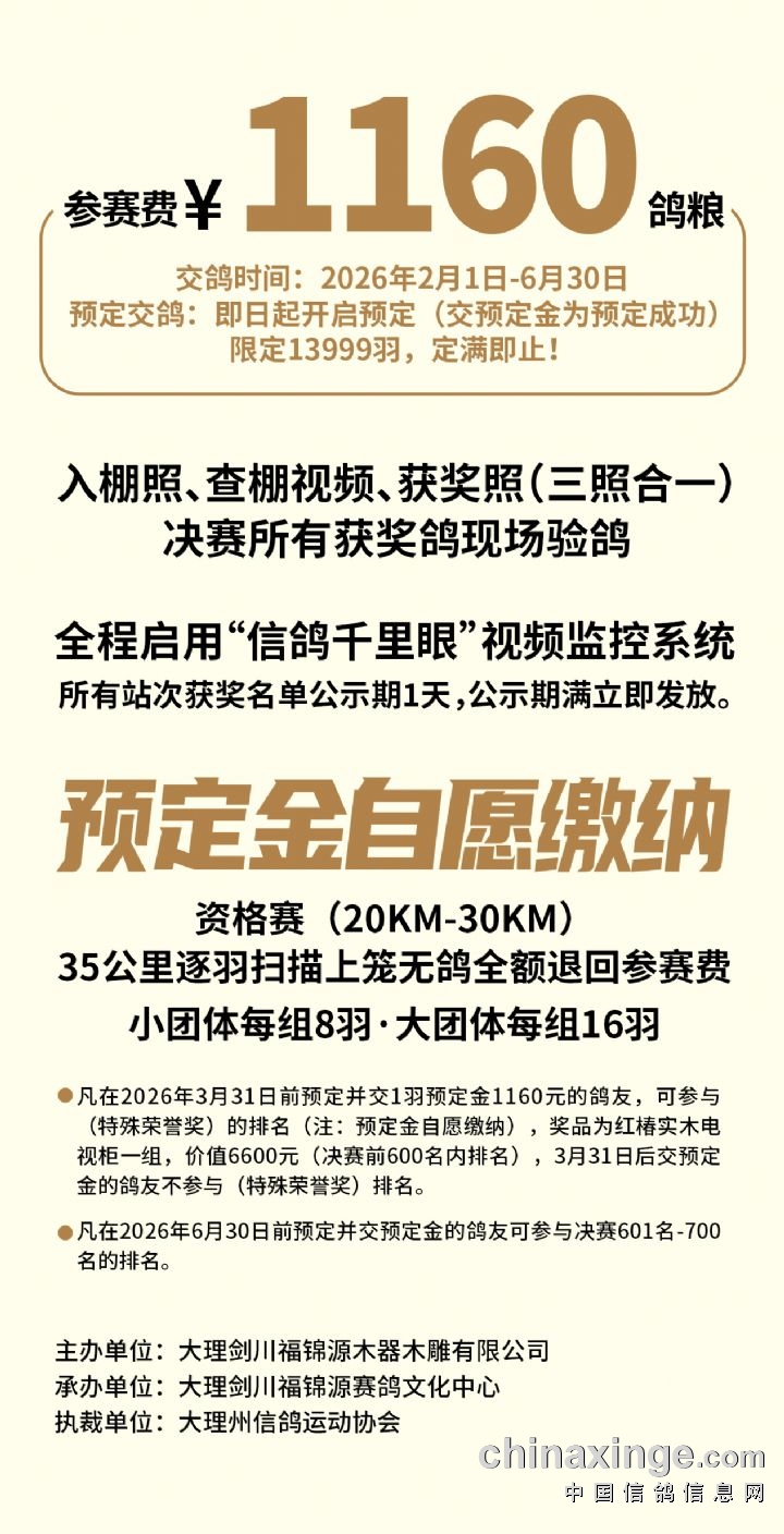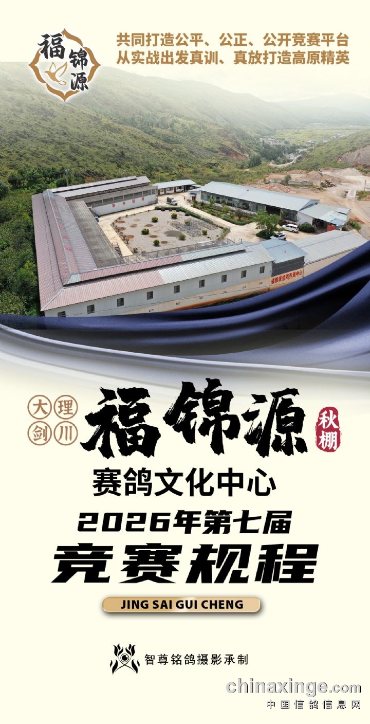 大理剑川福锦源赛鸽文化中心距剑川县城5公里,剑鹤公路、水古楼村旁,公棚附近无高大建筑,俯视剑川县城、和秀丽的剑湖都尽收眼底,地理位置及佳。北纬26°32'11'' 东经99°57'34'',海拔2300米,平均气温全年温度是 9℃ ~ 26℃四季分明,是赛鸽理想的竞赛场地。本中心比赛放飞路线为正南线,途经大理、巍山、南涧、云县、临沧、双江等县。剑川县鸽会己放飞比赛多年,400公里归巢率在百分之七十三左右,是大理州县份内放飞南线难得的一条黄金赛线。