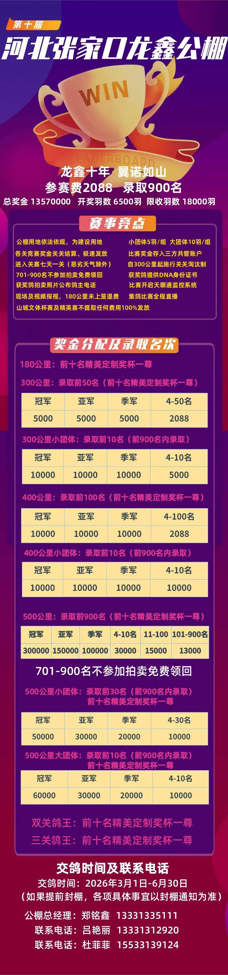我们本着“公开、公正、公平、透明”的原则以鸽创业,以鸽会友。欢迎广大鸽友前来参观指导,集千万鸽友于一家!