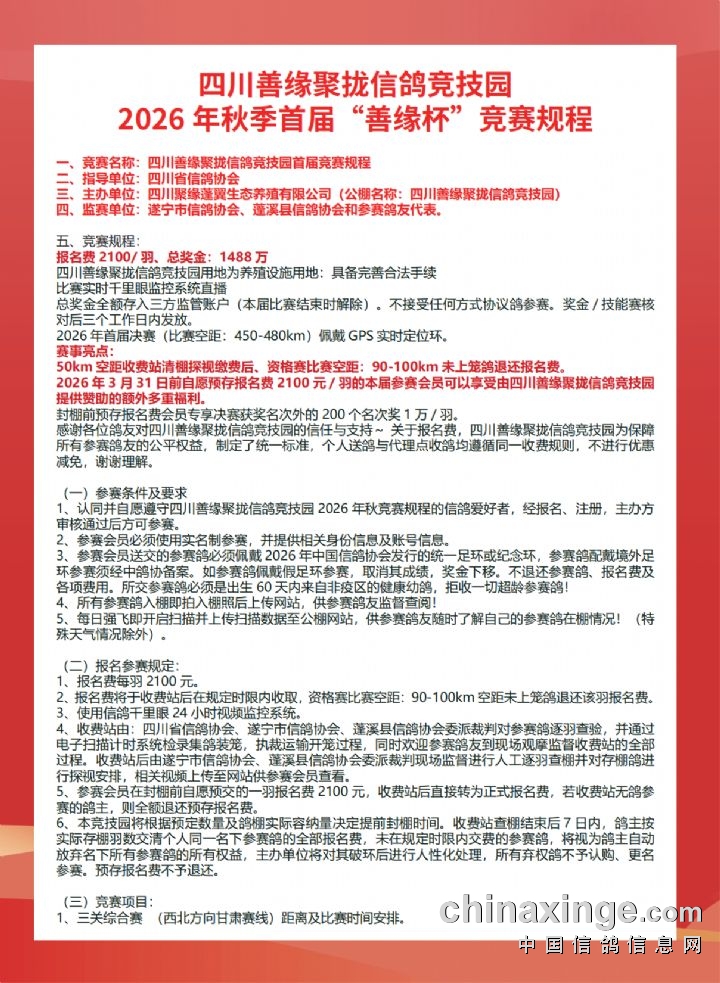 四川善缘聚拢信鸽竞技园简介: