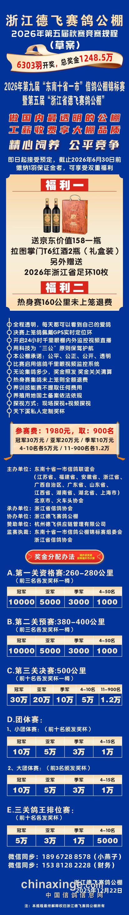 希望以上信息能够帮助到您。如果您对浙江德飞赛鸽公棚(秋棚)还有其他问题或想了解更多详情,建议直接联系公棚或通过其官方渠道进行查询。