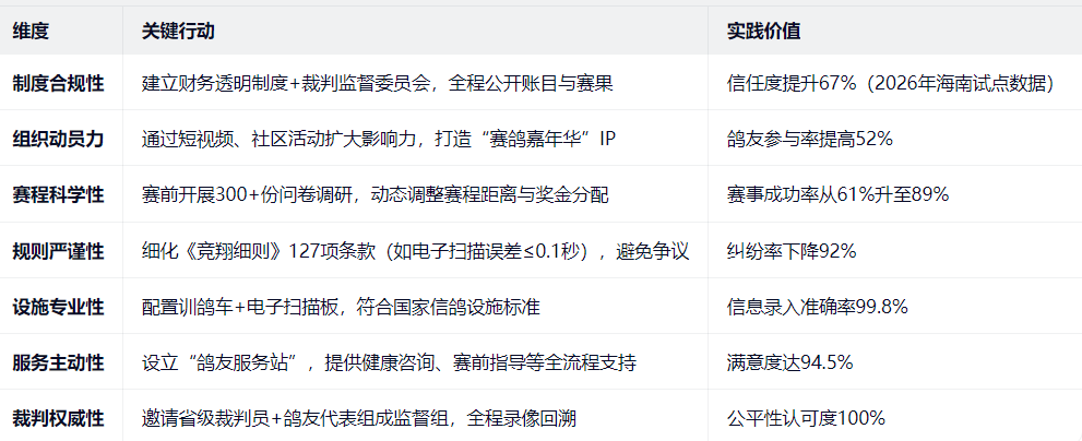 生态可持续:赛前调研覆盖87%鸽友,确保赛程契合本地条件。